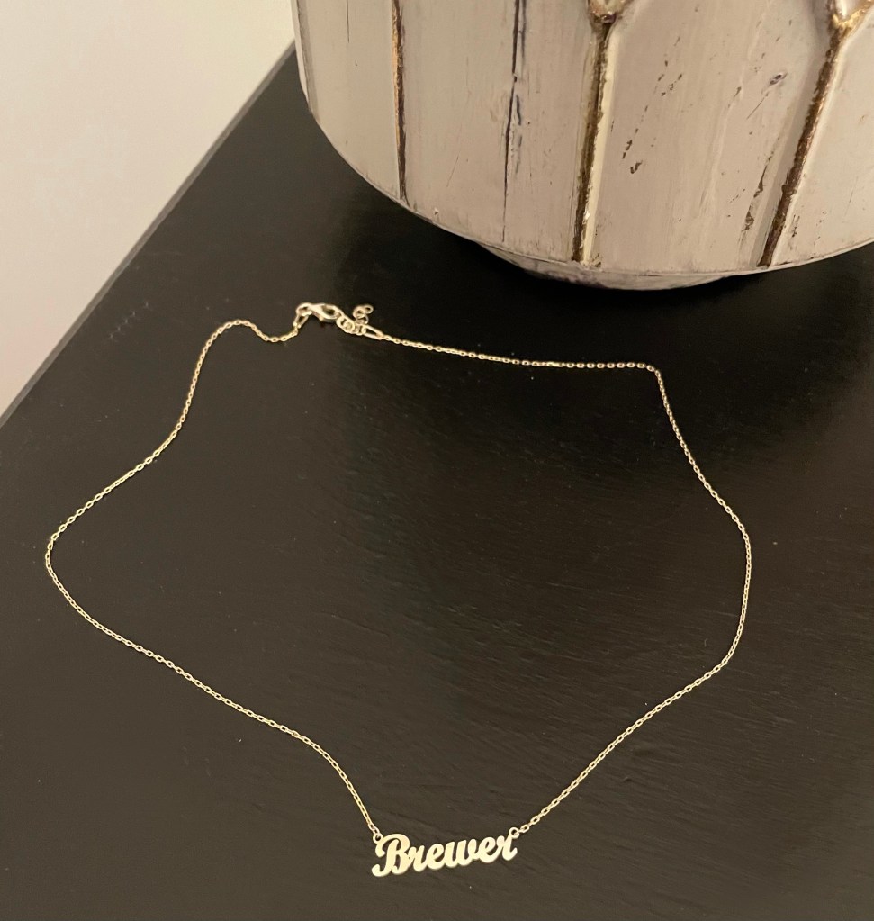 Let’s talk about another necklace that I’m now wearing all the time! I found this gold necklace on Etsy in font: script and had it personalized with Brewer’s name! I like how the MAMA necklace has the letters spaced out and this name necklace, has the letters close together! It’s also a really affordable necklace, on sale for $21 + currently free shipping!