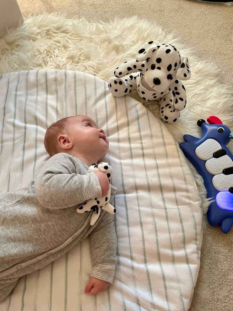 -I would also say that he’s starting to go through a phase where he likes to be entertained a lot more or else he can get a little fussy. We love making him smile & seeing his personality!