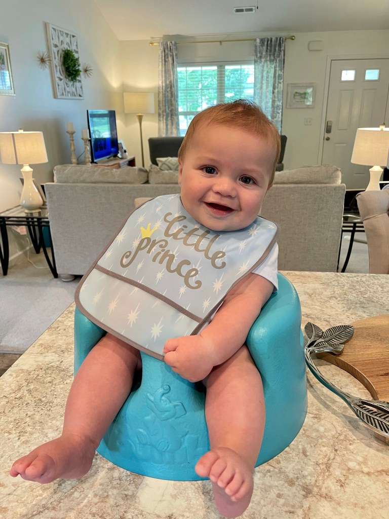 My mother in law sent me this picture one day while she came over to hang out with him! He loves his little bumbo seat!!
