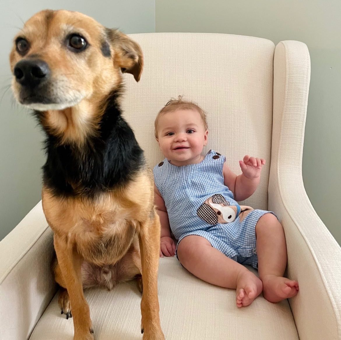A boy & his dog! Fun fact: I bought this cute little outfit back when I was pregnant. I saw it and thought the dog looked just like Ace!! It’s so hard to find things that have Ace’s breed on it because well…. rescue dog! Brewer loves his Acey Pants and Nashy Bashy Bear! Seriously, he laughs OUT LOUD at the dogs!