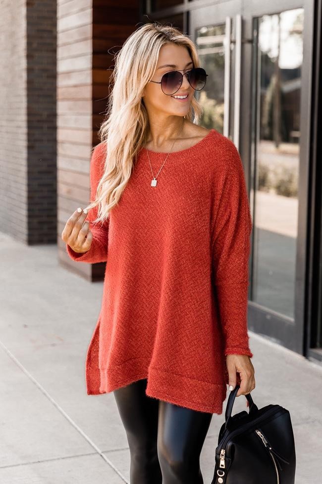 How cute and comfy does this red oversized sweater look?! I saw it and had to have it! I definitely think it’s a piece that I will get lots of wear out of, this fall. It can be worn with leggings and that is my go- to attire in the fall! I’m also obsessed with the color and how soft it is. It can for sure be dressed up or down!