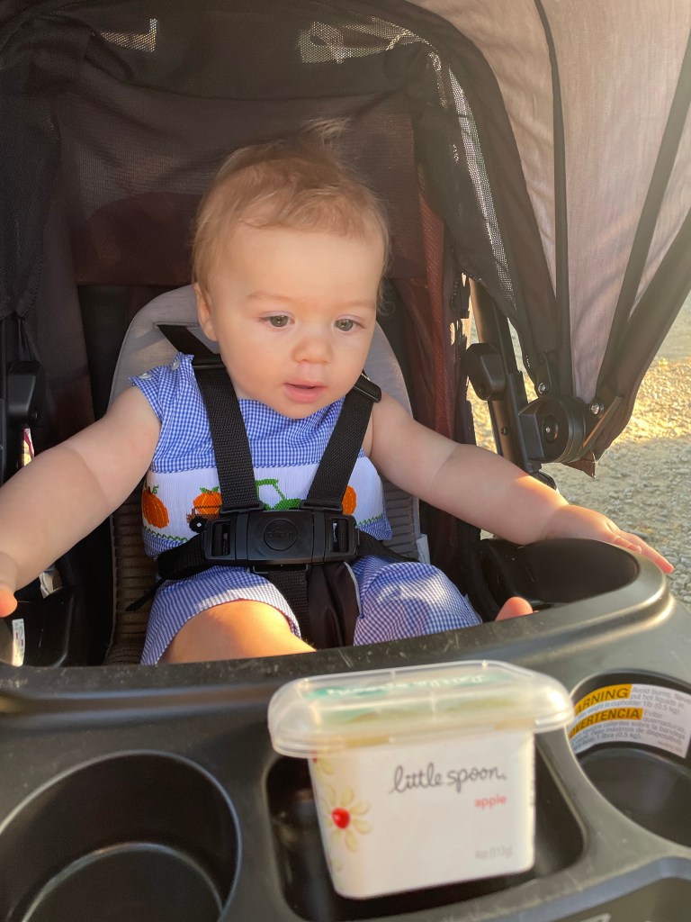 -Riding in the car for more than 30ish minutes. Car rides are just not his favorite thing anymore. He would much rather be on the move!!
