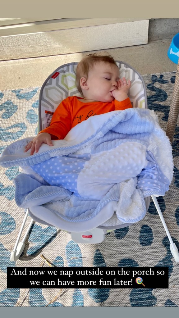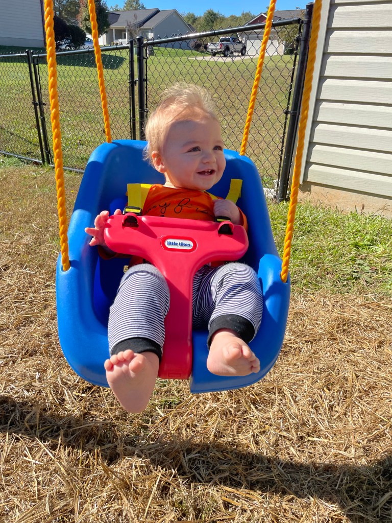Halloween morning, we spent time outside so Brewer could hang out in his new swing that Nana and Papaw brought him/ built!