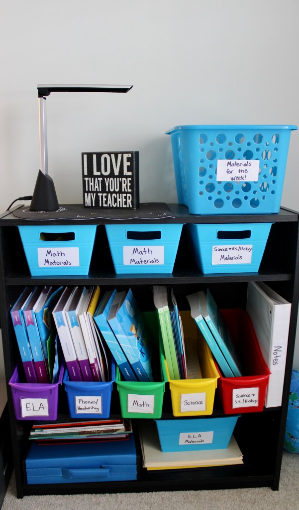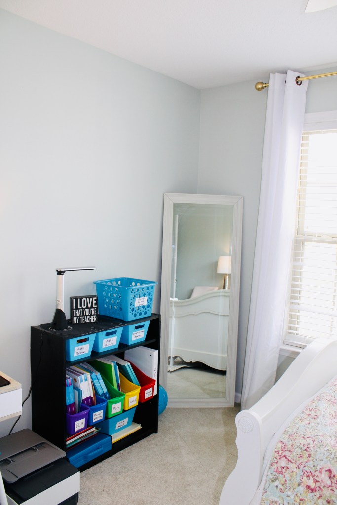 I had this shelf/ bins in my previous classroom, so now I have it in my home office with all of my teaching essentials!