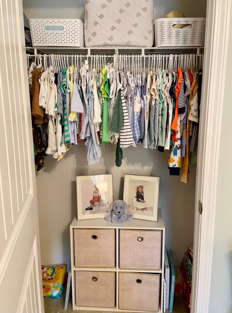 In the storage cubbies at the bottom, I keep smaller things like socks & hats!