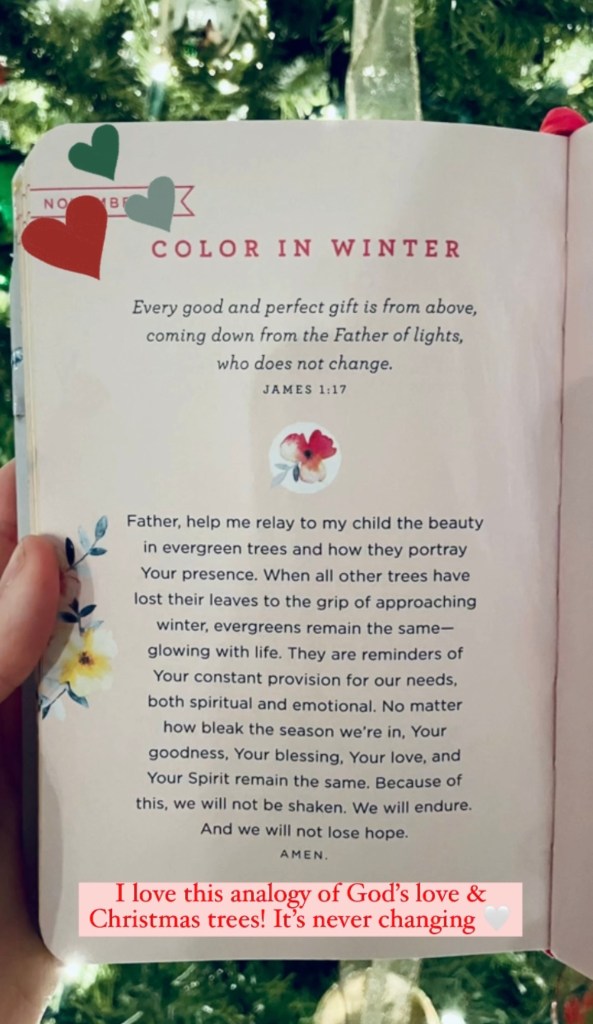 My house is fully decorated for Christmas and just a few days ago, I opened up my devotional book to this: