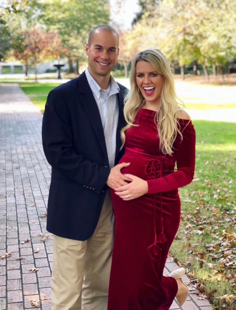 I found a similar red/ velvet maternity dress for all of my pregnant ladies out there! It’s linked, here:
