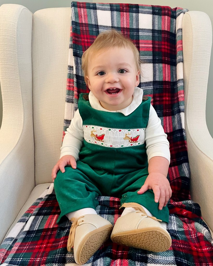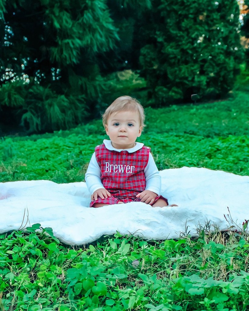 Brewer wore this super cute monogrammed outfit for our Christmas photos! Details, here: