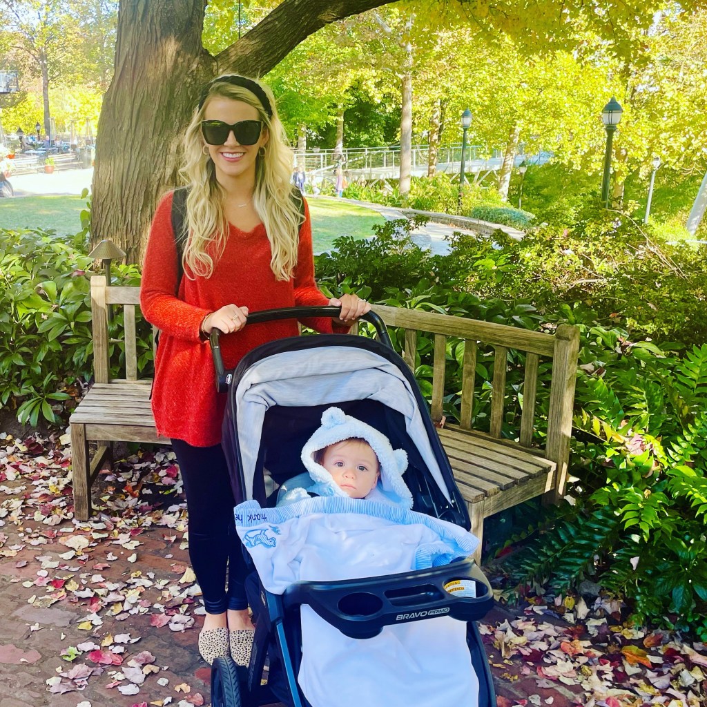 We are loving walking in the cooler weather outside, all cozy & bundled up!