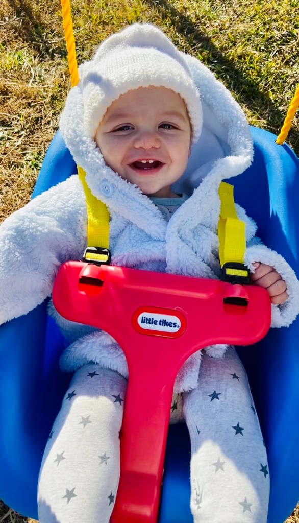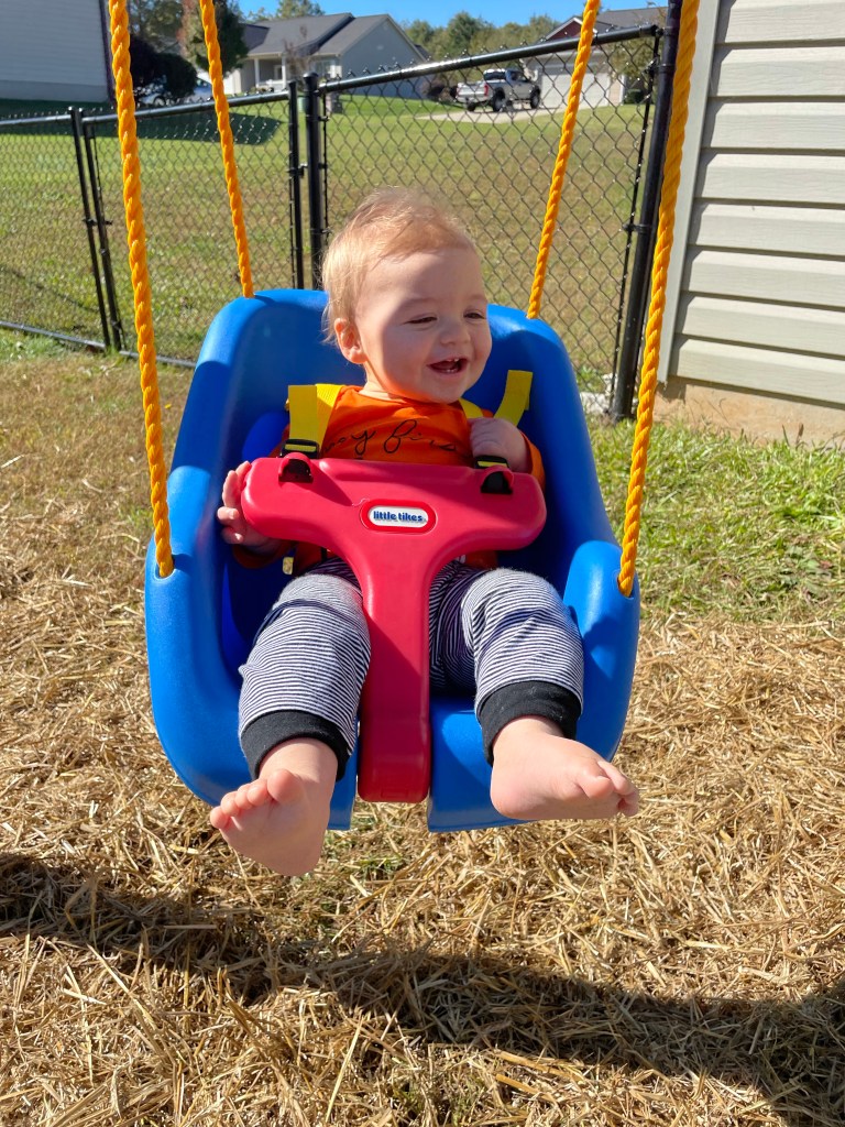 The swing has become his new favorite thing! Look at that little grin!