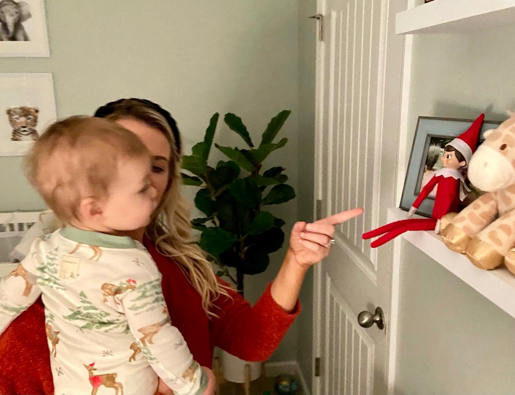 Buddy the Elf arrived at our house! Brewer just wanted to touch it lol, already breaking the rules hahaha!