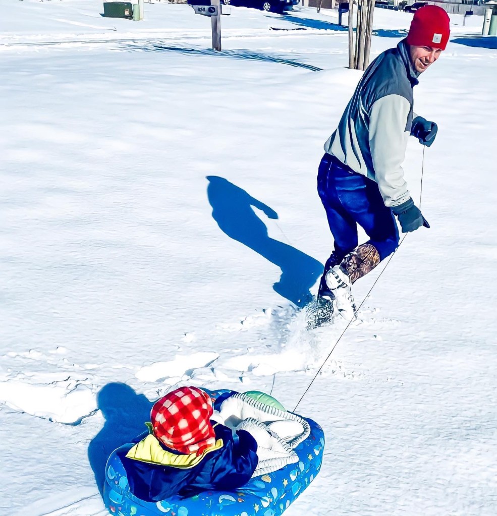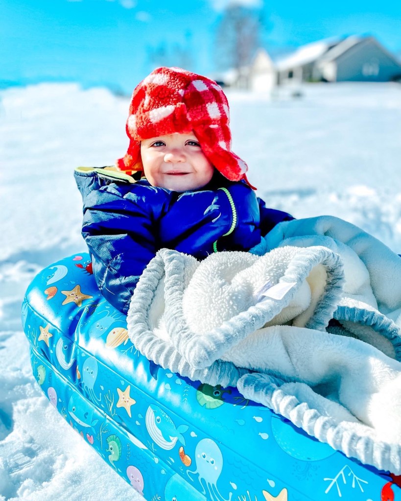 We used Brewer’s inflatable bathtub that we used at the beach last summer for sledding! LOL!