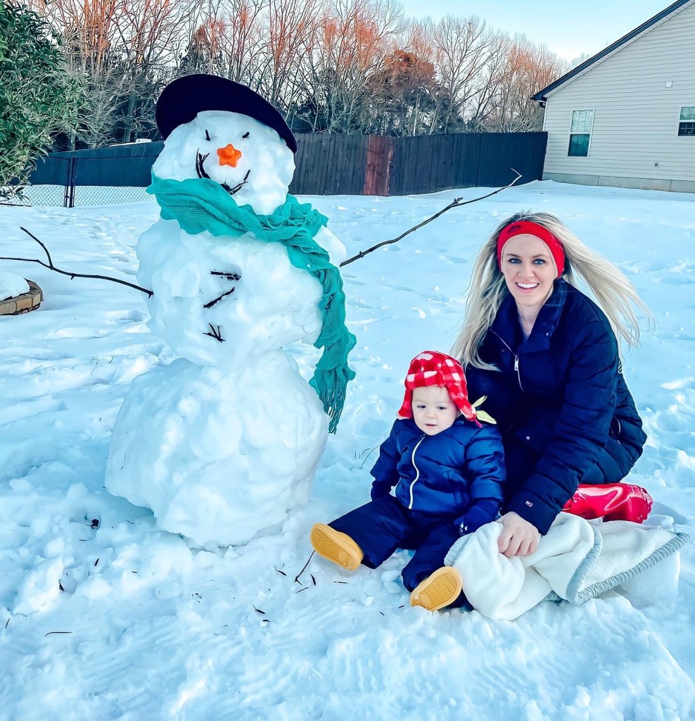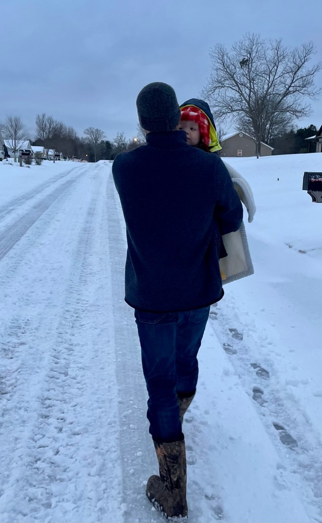 After dinner, we went for a little winter wonderland walk! We tried to push Brewer in his stroller but it wouldn’t budge in the snow lol! It was so thick!