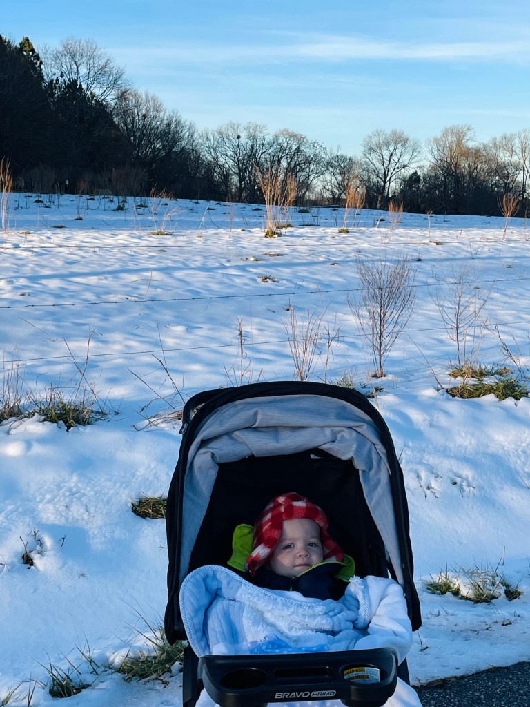 We went for lots of snowy walks once we were able to push the stroller on the street again!