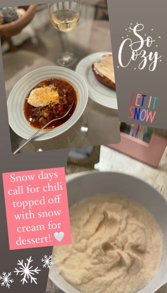 It’s only right if you have chili for dinner on a snow day + snow cream!