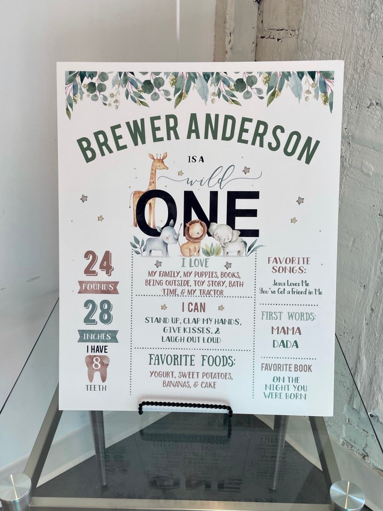 I also had a “wild one” favorite things board made! I purchased this as a digital download and had it printed at our local Walgreens!