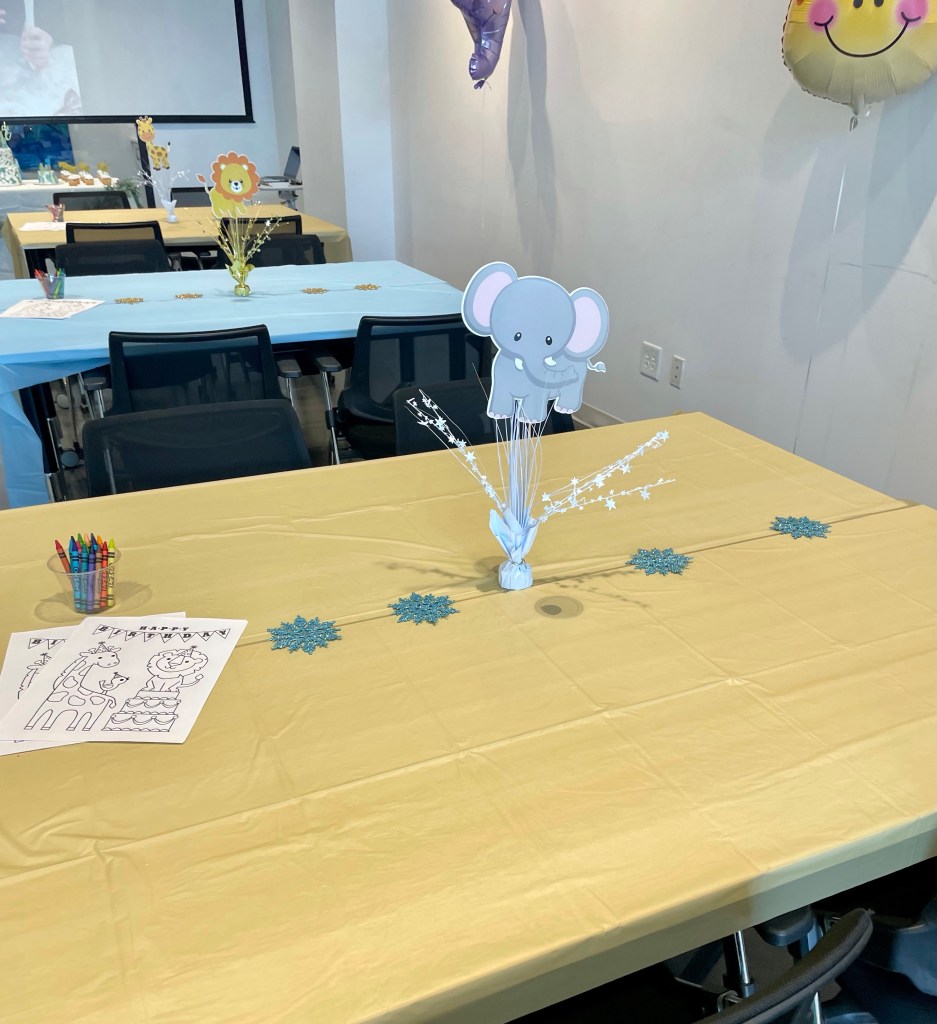 The studio has tables & chairs, plus a screen that I was able to use to dusslide show of Brewer’s first year throughout the party!