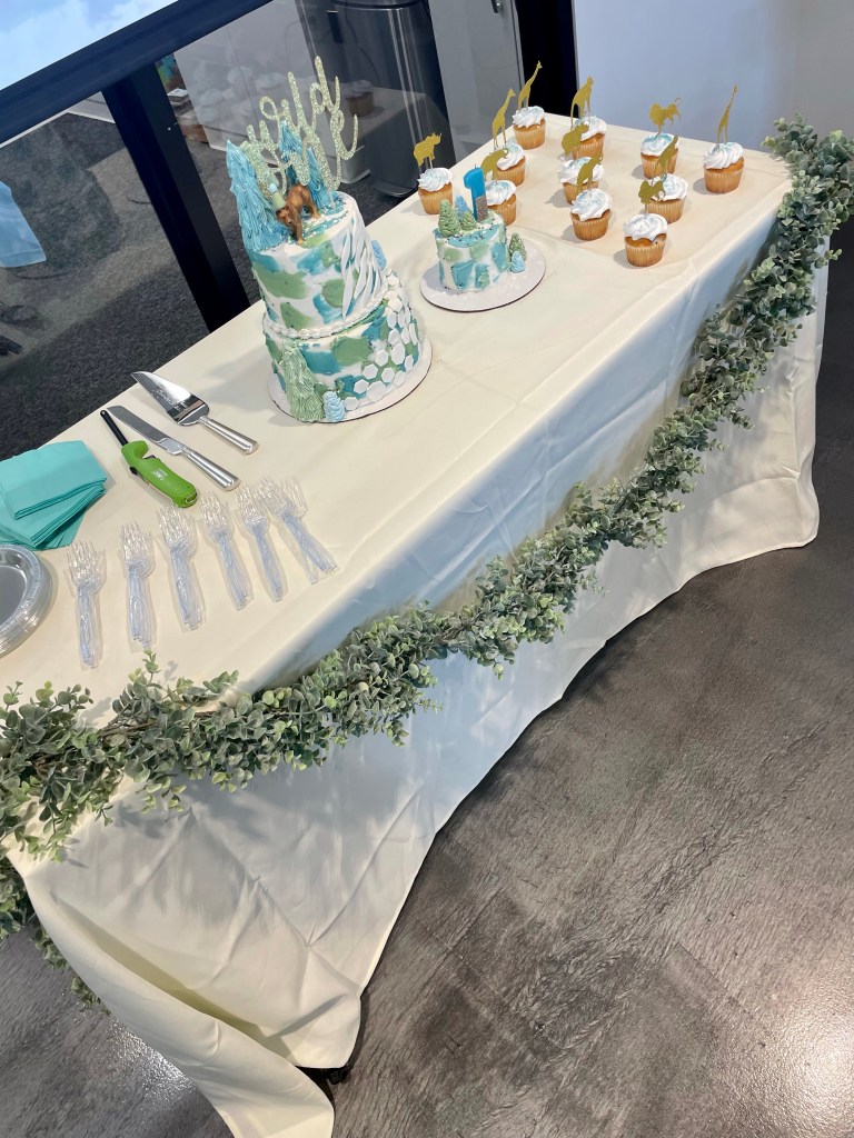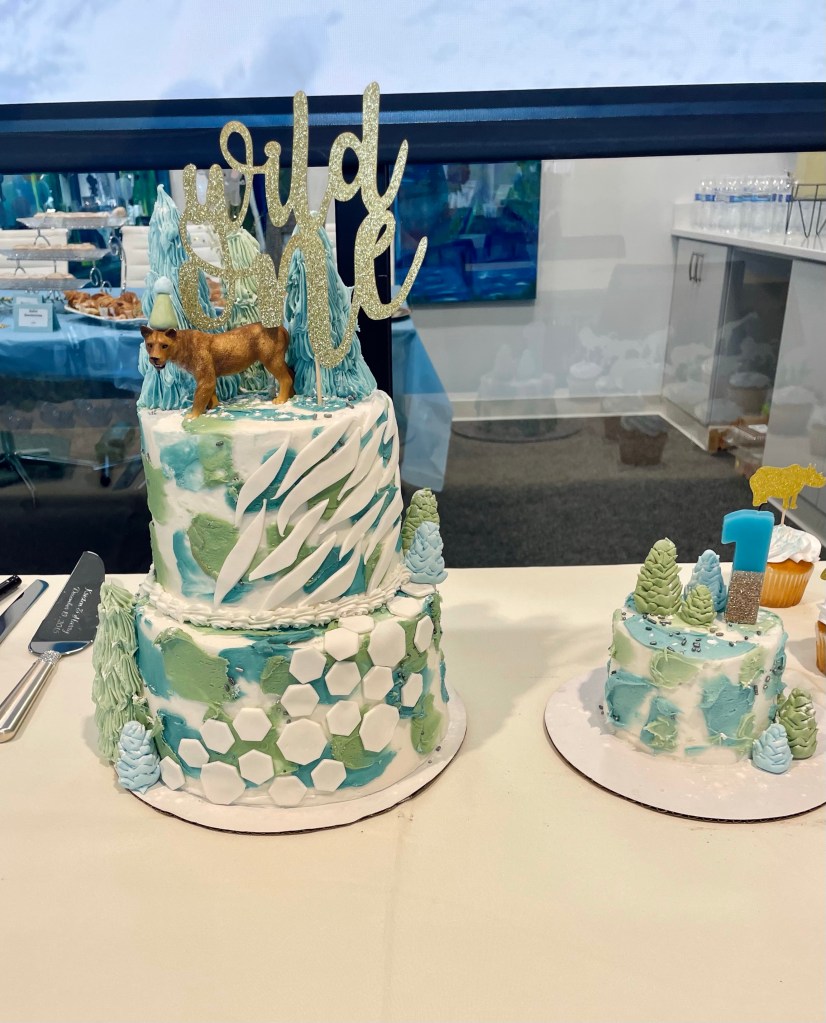 (Psst.. the cake had already been made when we had to postpone Brewer’s party by one week when covid reached our house. The cake lady froze it for us for an entire week and it still tasted amazing!!)