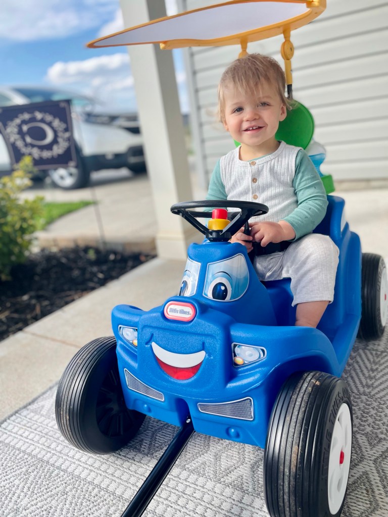 My best friend Kacy have Brewer this cool car! He is absolutely loving it!! He much prefers to ride in a car over his stroller on our walks these days!