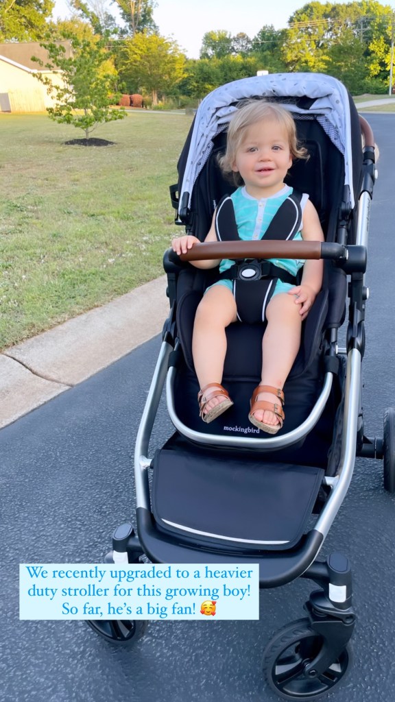 We recently upgraded our stroller for this growing baby! We are loving the mockingbird!