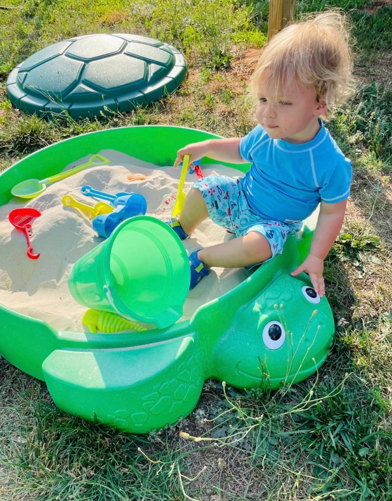 Brewer’s favorite thing ever is to be in the backyard! Wether it’s in the sandbox..