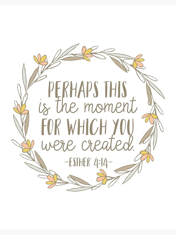 My life verse! This is my very favorite! “Perhaps you were created for such a time as this..” that’s good! If you are allowing the Lord to guide your steps, then you can have peace knowing that God created you for those moments in front of us. He knows every situation & opportunity before we do! It’s good to remind ourselves that God has equipped us for whatever lies ahead!