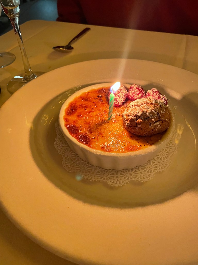 Dinner was perfection topped off with creme brûlée for dessert! They even put a candle on top for Harry’s recent birthday!