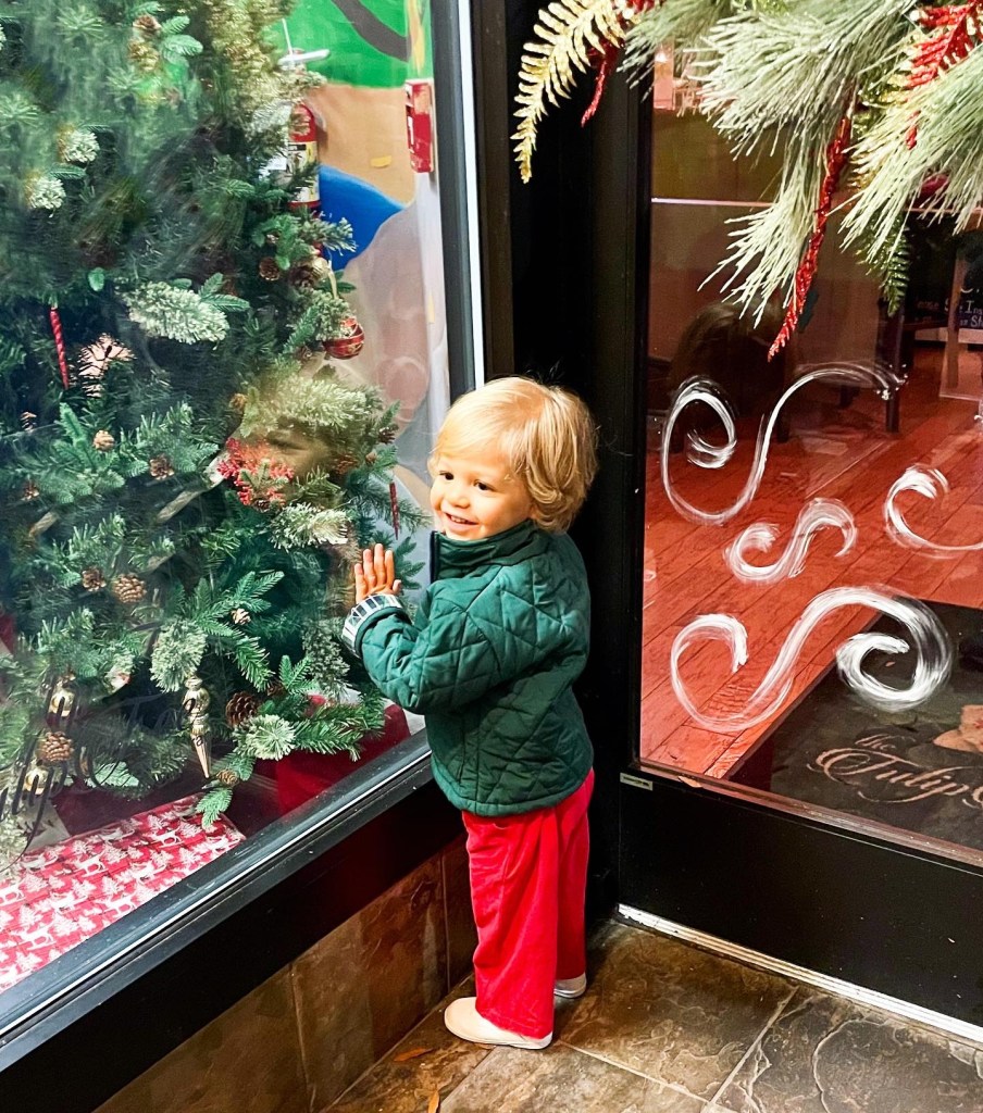 Our favorite tradition that we look forward to every year is, Dickens of a Christmas on our town square in DT Spartanburg! Brewer loved the window displays this year!