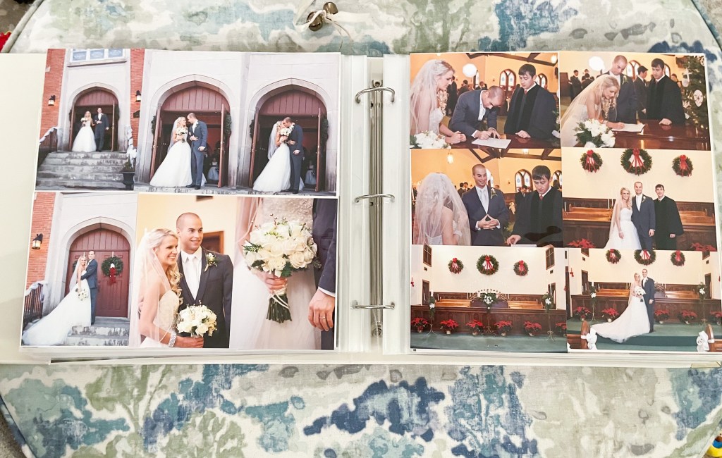I have a few photo albums in the house! I have one titled “the years before babies.” It covers our dating years, engagement, a few wedding photos, and the first 5 years of marriage! This was easy to make on an app called, Mixbook. I plan to make one every 5 years of married life to include memories together, our friends, & family. ❤️