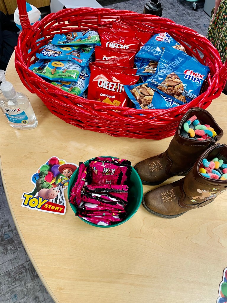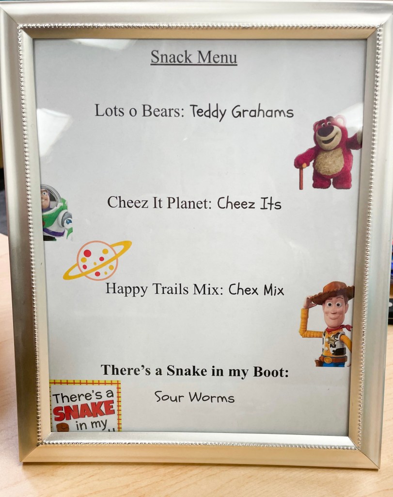 Sunnyside (Brewer’s room) box was used for gifts! We added his toys from the movie that he already had, to another box for decor!