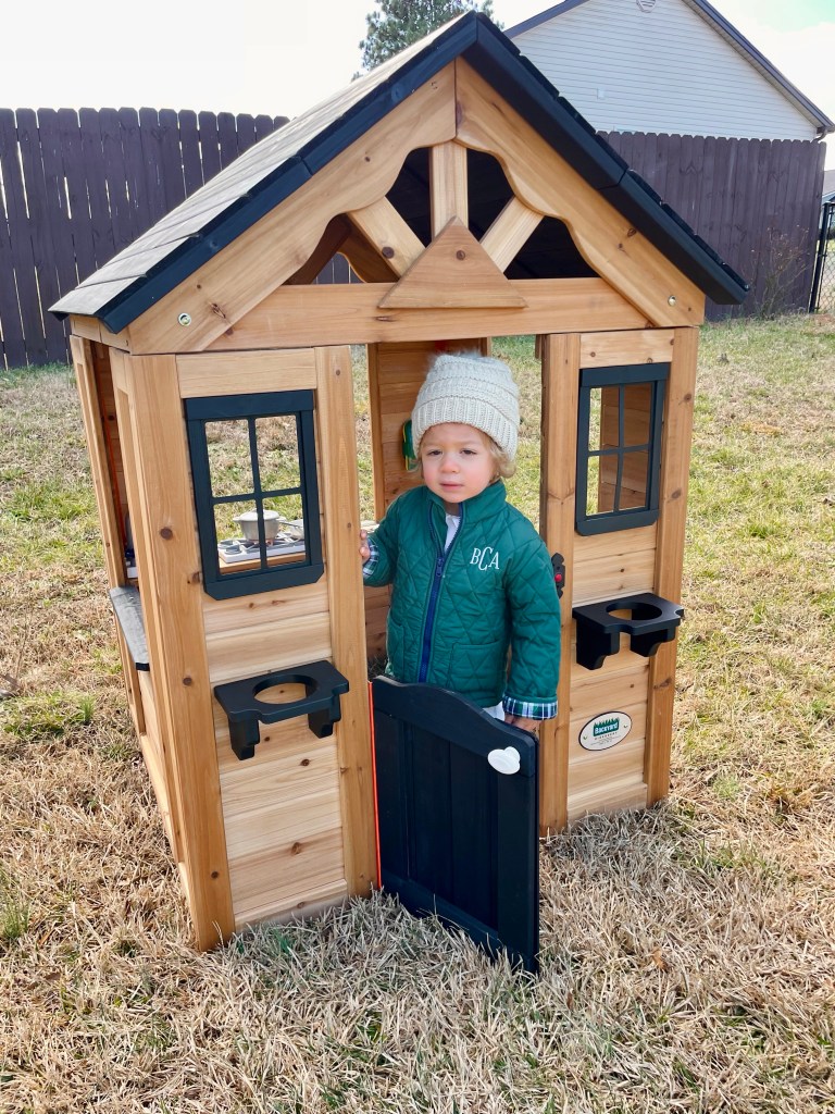 Brewer got his very own real, wooden playhouse!! Now, he can take his imagination to infinity & beyond anytime he wants right here in the backyard!