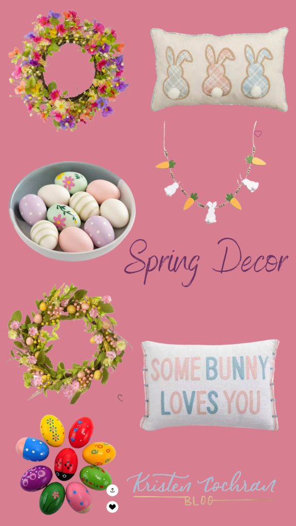 I go for a light, bright, soft color scheme in our house! But of course, there are some special decor pieces that make an appearance during the spring months!