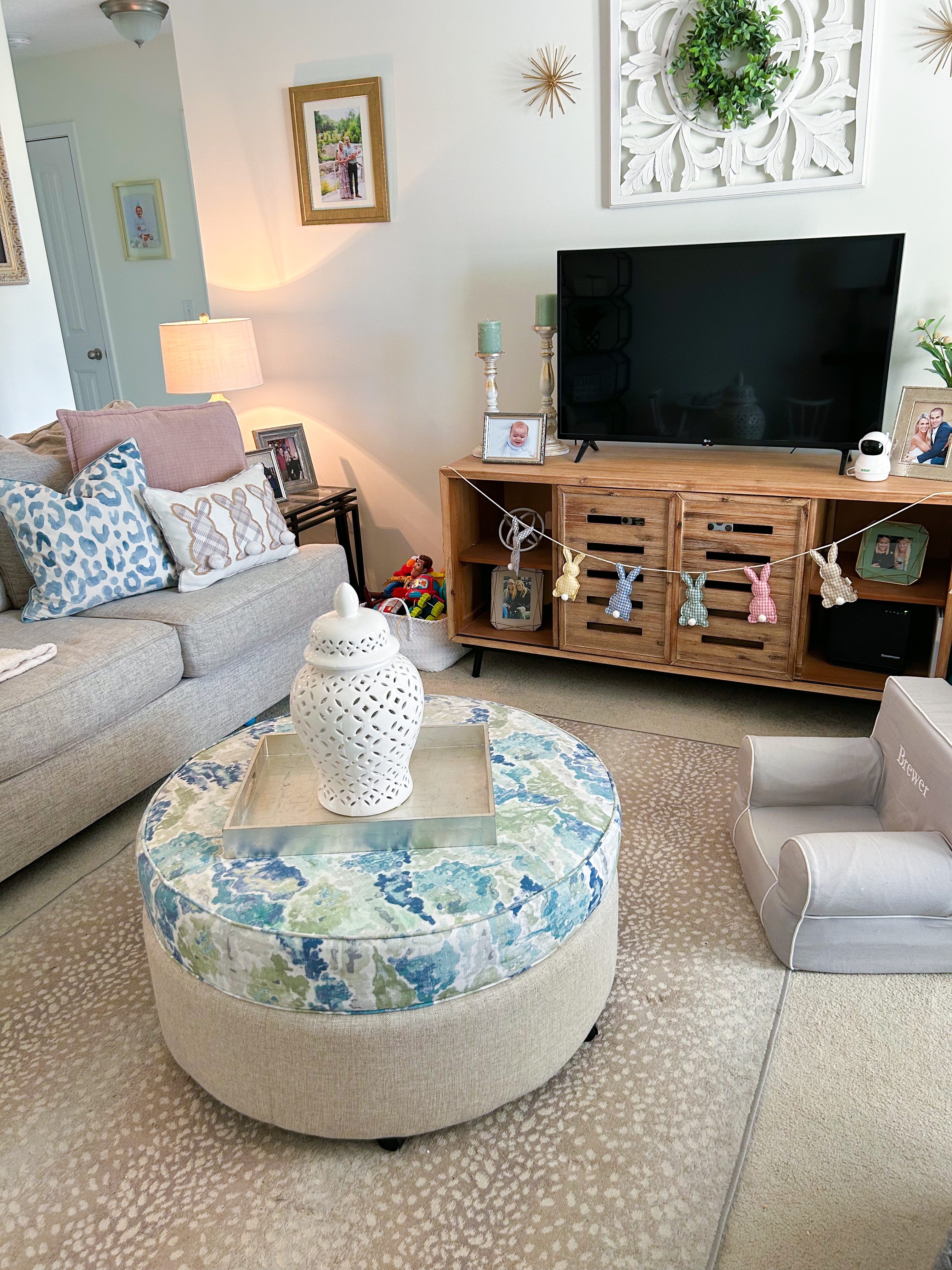 For the most part, I don’t need much “spring decor” because I would say that our color scheme in our house best fits the season of spring!