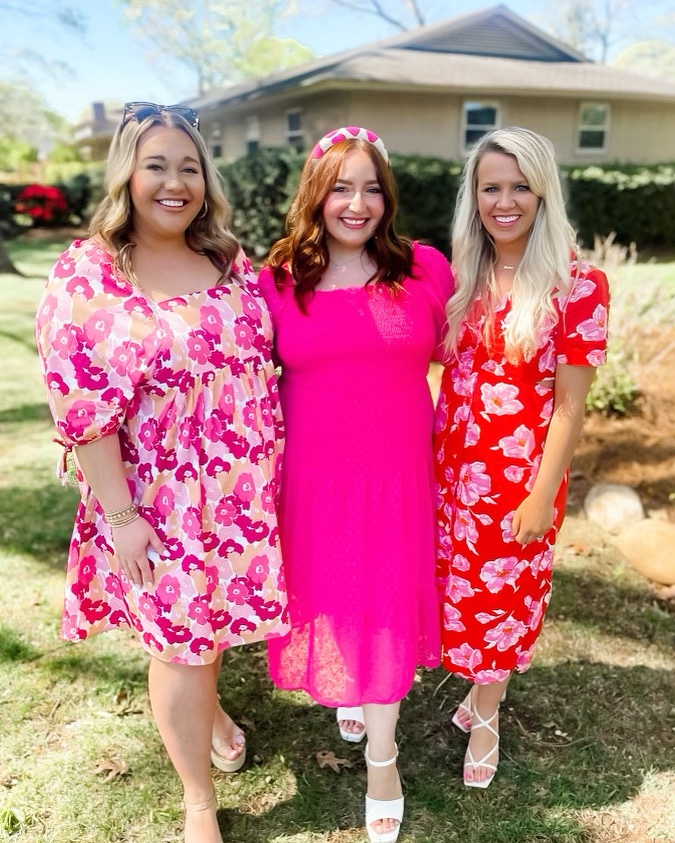 1. My dress– I wore this dress recently to a bridal shower and got so many sweet compliments on it! I love the colors for this time of year, the buttons down the front, the little cut outs on the side, and the fun floral pattern! It’s perfect for all spring/ summer events!