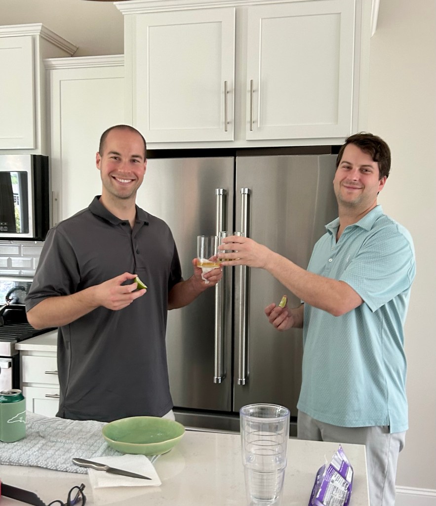 And I snapped this picture of Harry and his brother, Brooks!! We had been at an event in downtown Spartanburg and went by Brooks and Mary’s house after! The news was spilled for the very first time when Brooks tried to offer me a glass of wine! Lol. So instead, the boys took a shot to celebrate!