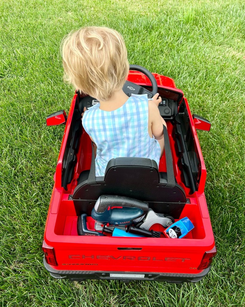 He’s all boy! Look at those tools he insisted on throwing in the back of his truck!