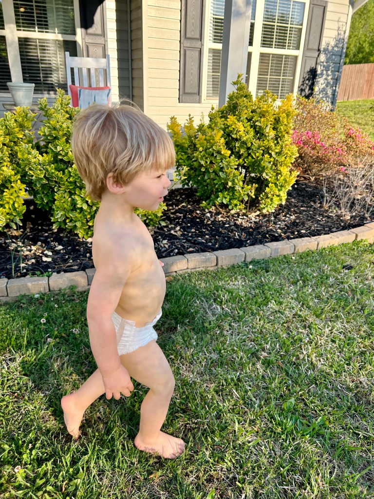 He is always making us laugh! He lays in bed at night and giggles, he LOVES to dance.. like loves to dance! He’s got this little dance move with a chicken wing arm that he does lately, lol. I need to get it in video! He loves for us to join in with him! Some nights, it is dance party central over here!