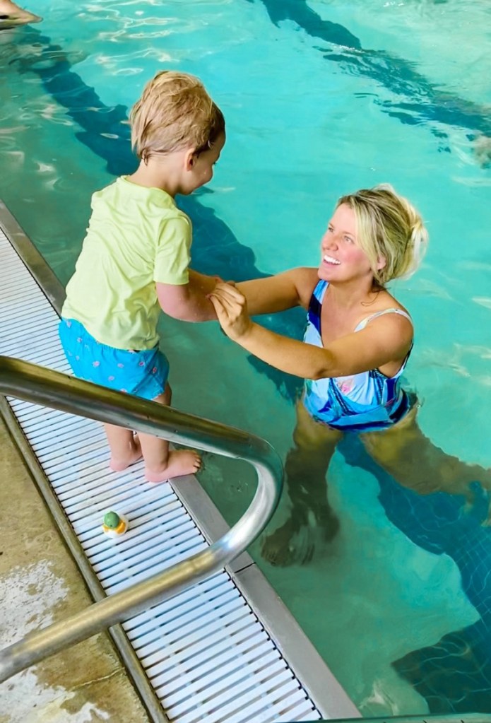 Brewer completed his first round of swim lessons in the month of July! We did Mommy & Me swim lessons this summer and we both loved it! He learned how to blow bubbles in the water, move his arms & legs in the water, and jump in holding mommy’s hands!