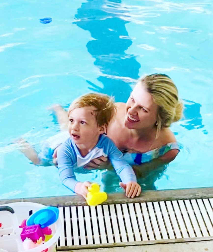 Brewer had his first round of swim lessons this summer! We did “Mommy & Me” swim lessons at the local Y and it was so special & fun! I will treasure those sweet memories with Brewer forever! He learned how to blow bubbles in the water, kick his hands & feet, and jump in holding Mommy’s hands!