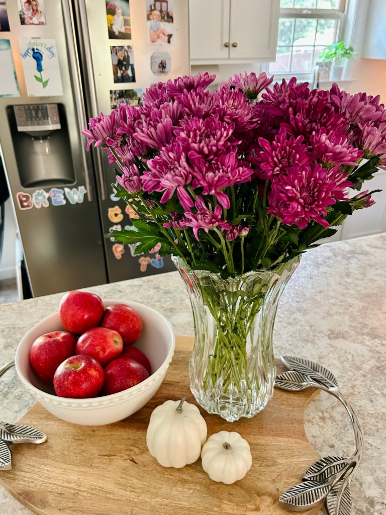 Fall flowers + apples on the kitchen island make me happy this time of year!