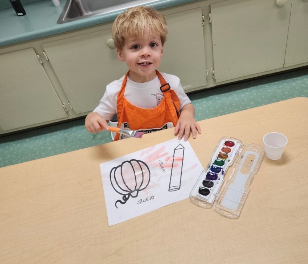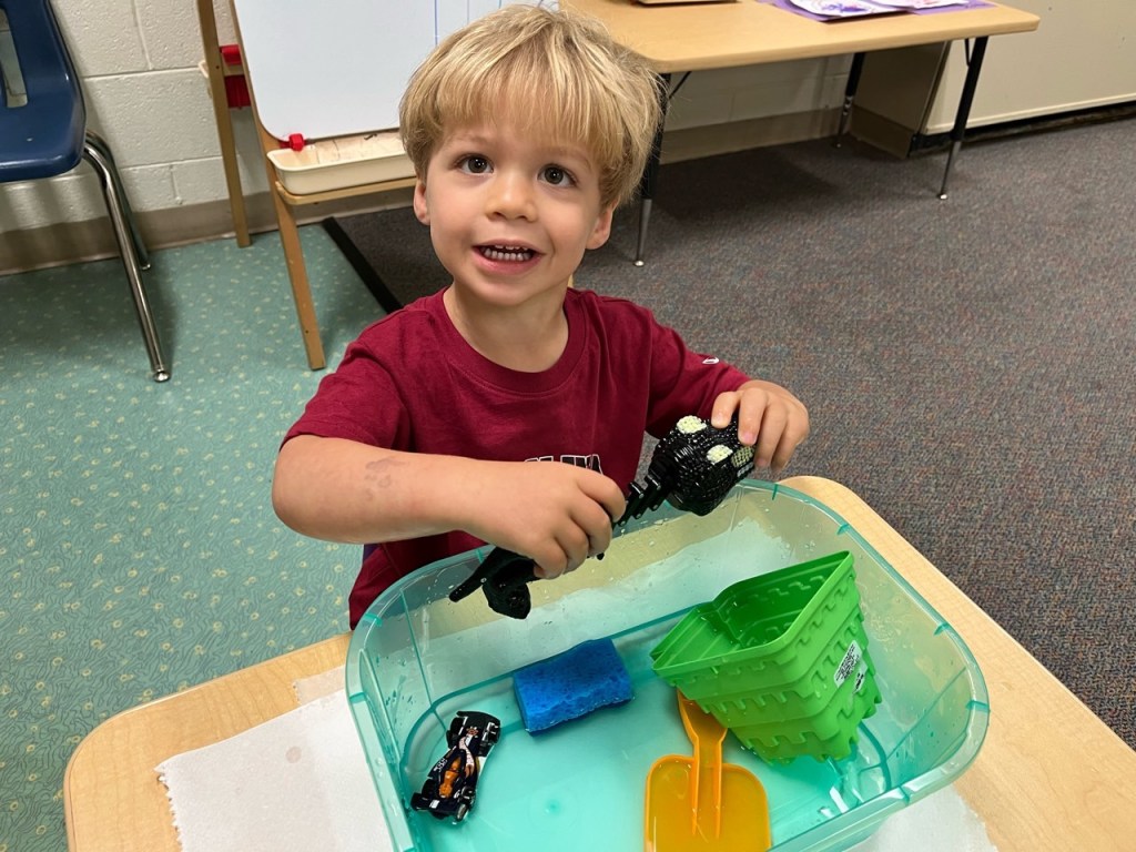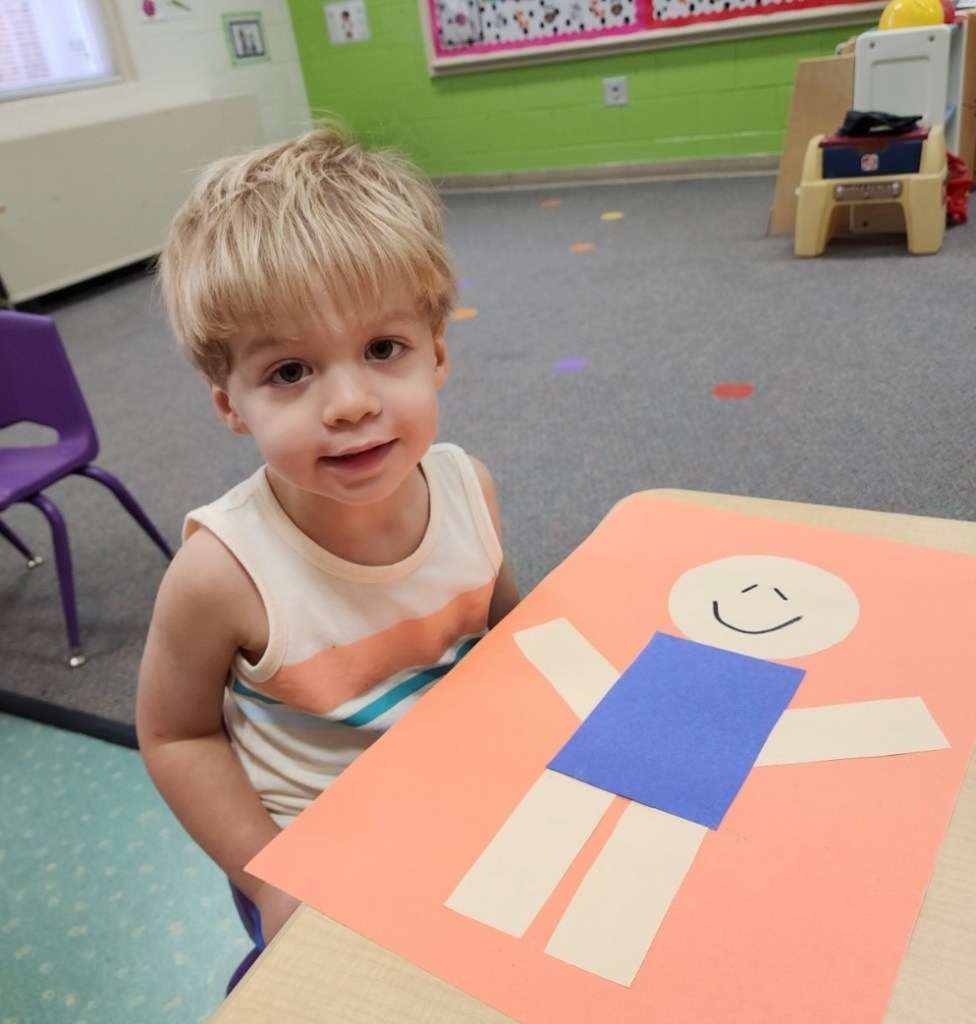 He has been living life in the 2K room! He plays outside, they have a PE day, a music day, he paints, colors, plays with water toys, and all sorts of fun things! He’s always SO excited to tell us about his day and these sweet pictures make my day! 🙂