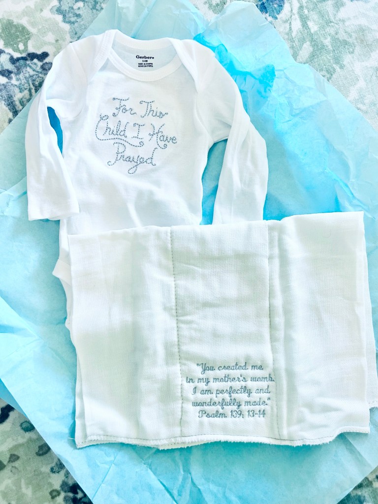 Look at this sweet precious gift my coworker, Lesley handmade for baby! Cue the tears!! This meant so much to us because this baby was for sure, prayed for and prayed for!