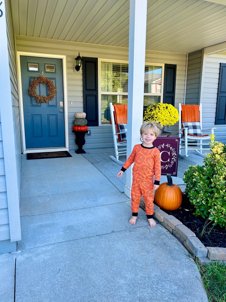 Brewer has also become obsessed with checking the mail each day. He shouts, “tunkin tunkin” when he sees the pumpkins by the mailbox. He is obsessed with pumpkins this season!