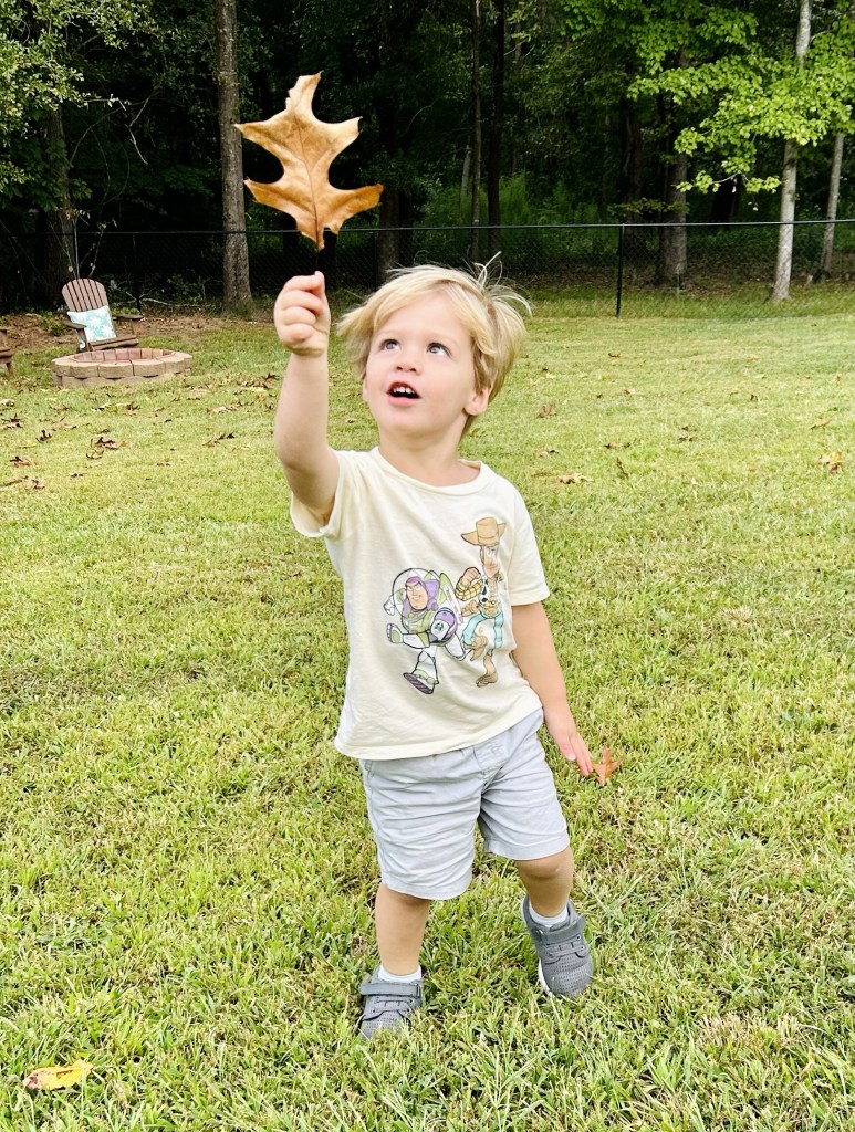 This Week: Let’s just take a moment for the fall weather this week!! It truly feels like fall! We have been spending every afternoon/ evening in the backyard! Brewer is loving running in the leaves and picking them up.