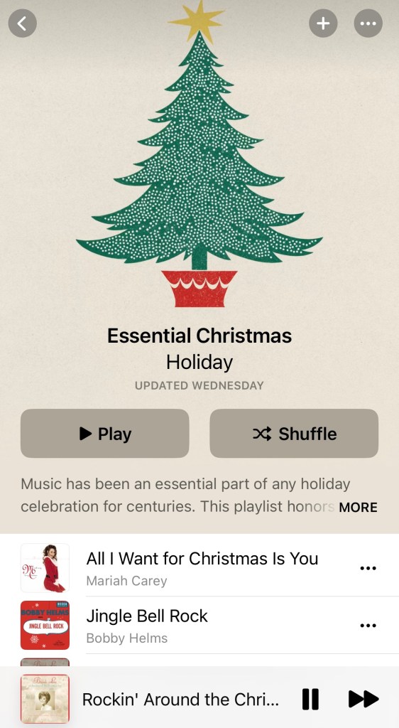 3. Christmas music– I really do thrive on Christmas music!! I love it so, so much!! This Christmas essential playlist on Apple Music is everything!