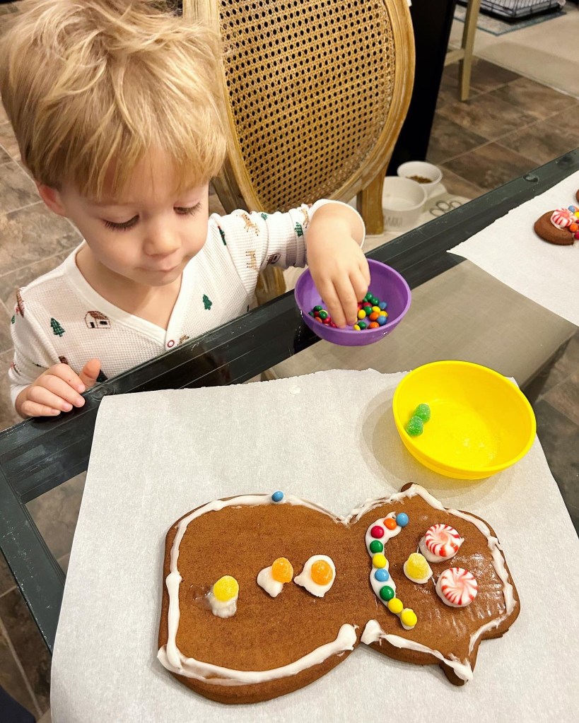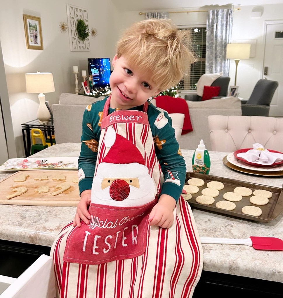 How adorable is this “official cookie tester?!” Brewer & I made a mess + memories in the kitchen making Christmas cookies!