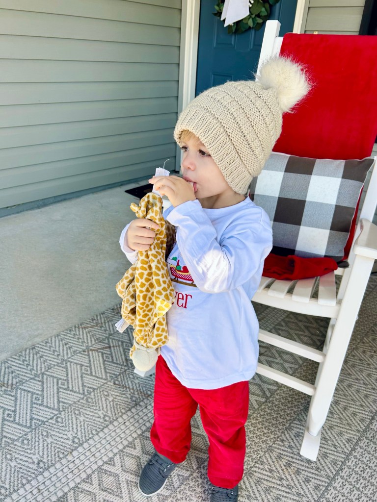 This cutie elf helping run some quick Christmas errands! When he realized I was taking a photo, he turned around backwards lolllll! Can you say toddler! My “easy to take photo days” have come to an end with this one! Haha.