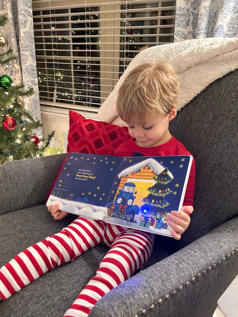 And big brother got a surprise book, “Little Blue Truck Christmas” with lights for being such a great big brother!!
