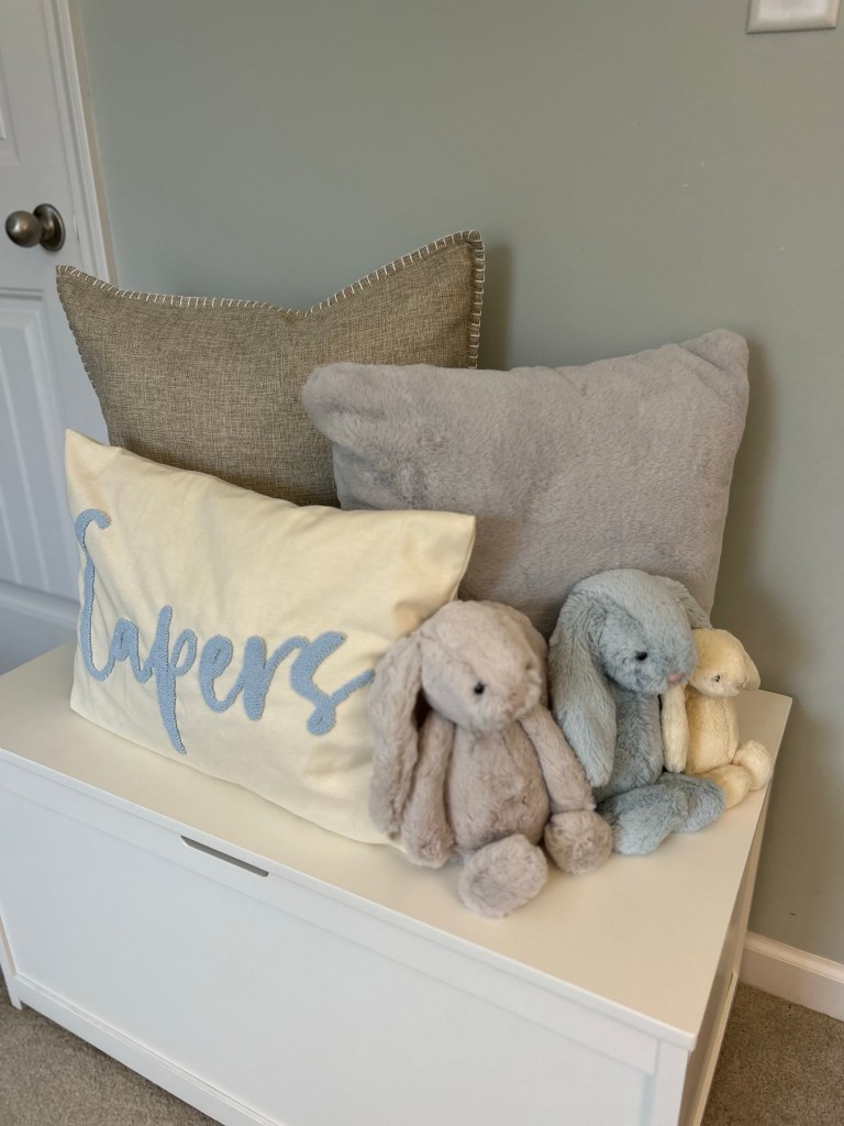 We are so excited for Capers’ first Easter. His Easter basket arrived last weekend. I wanted it to match Brewer’s basket, just in a different color!