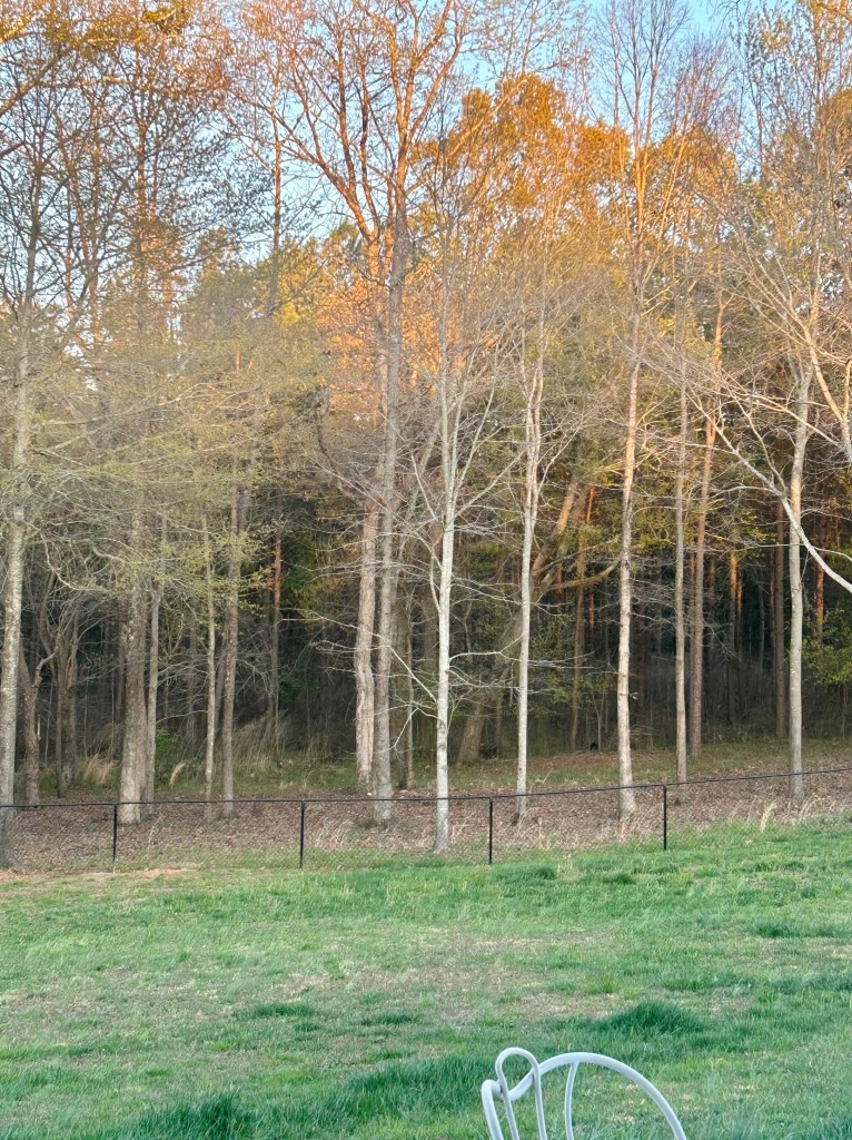 We came home and hung out on the back porch while Brewer played outside. I love seeing everything slowly turning green again!